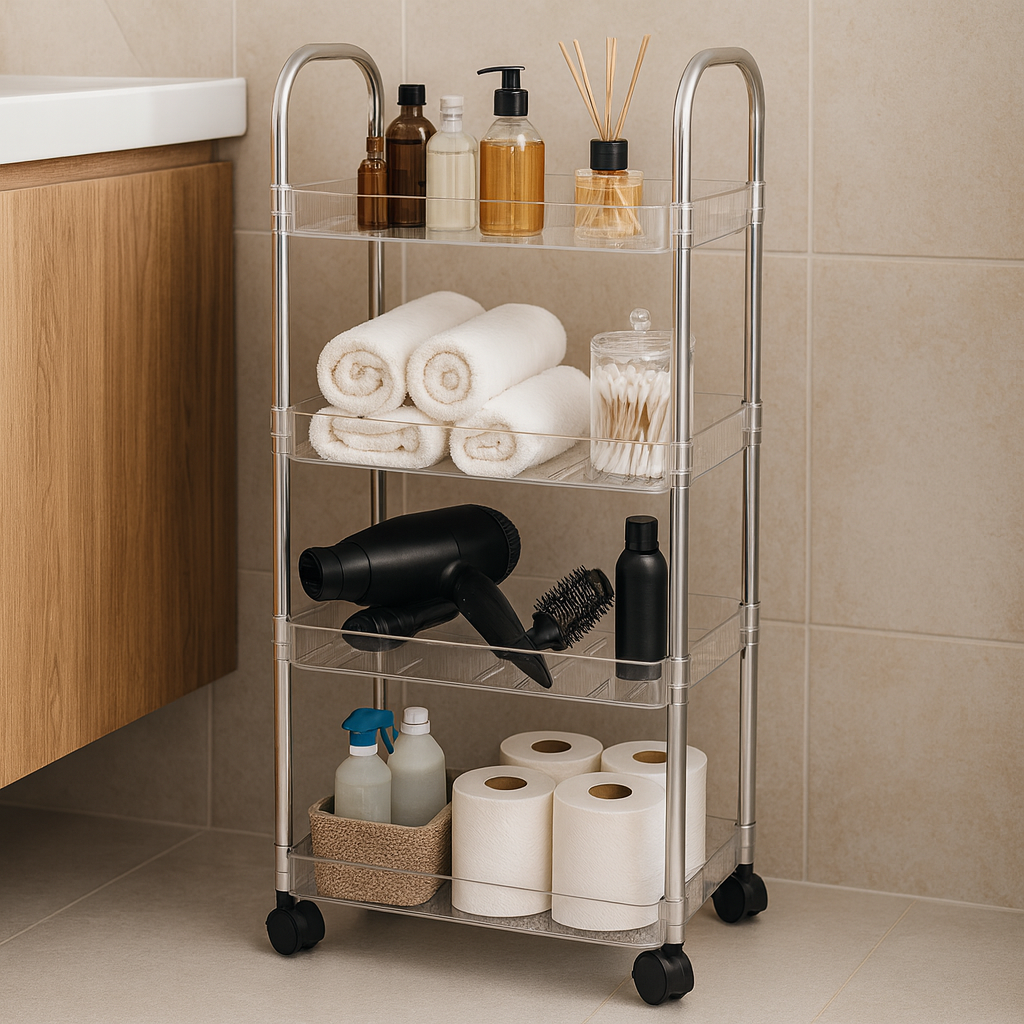 O Carrinho Multiuso Affresco com 4 Prateleiras Transparente é ideal para quem busca praticidade, organização e melhor aproveitamento do espaço no dia a dia. Compacto e funcional, ele facilita a organização de diversos ambientes, mantendo tudo ao alcance das mãos.